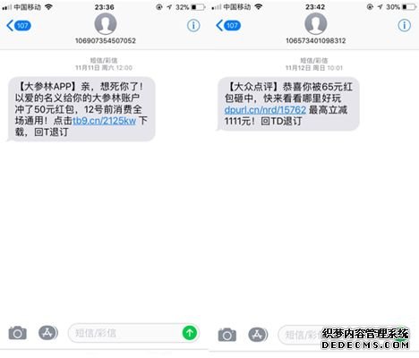在短信營(yíng)銷(xiāo)中,我們常常會(huì)在短信內(nèi)容上附帶我們產(chǎn)品的鏈接,吸引用戶(hù)前往下載或訂購(gòu),但是,不同的鏈接,可能會(huì)讓新用戶(hù)在信任問(wèn)題上造成不好的印象。我們看例子中兩條短信內(nèi)容的鏈接,會(huì)對(duì)哪個(gè)鏈接更容易產(chǎn)生信賴(lài)感?大部分用戶(hù),都會(huì)選擇第二條。一方面,鏈接占比較短,看上去更舒服;另一方面,這是官網(wǎng)鏈接,以com結(jié)尾,更能讓用戶(hù)相信,這是可信賴(lài)的鏈接,可以打開(kāi)瀏覽網(wǎng)站的內(nèi)容。