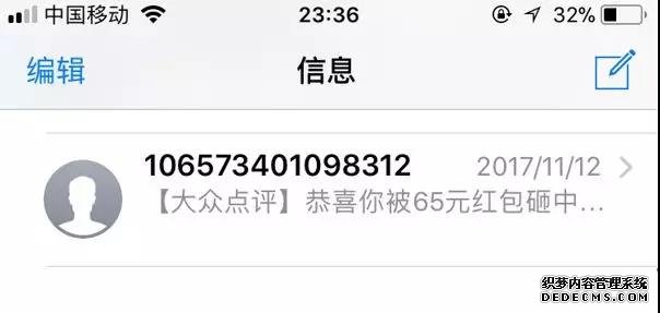 短信比較弱勢(shì)的地方就是單一色的文字表達(dá),容易讓人產(chǎn)生視覺(jué)疲勞,抓不到重點(diǎn)詞匯而放棄閱讀。還是用這個(gè)案例,假如“恭喜你被65元紅包砸中…”調(diào)整為“恭喜你被很多紅包砸中…”,是否增加了用戶(hù)的閱讀成本?也就是說(shuō),適當(dāng)?shù)耐ㄟ^(guò)數(shù)字表達(dá)意愿,能夠更快速的抓住用戶(hù)的眼球,促使用戶(hù)有繼續(xù)閱讀的欲望。