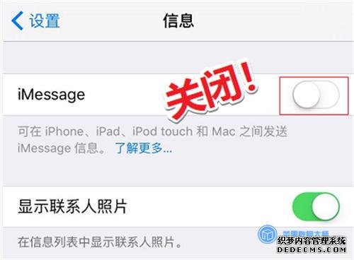 想要避免以上尷尬的局面出現,我們需要打開手機【設置】-【短信】,關閉【iMessage】再進行短信群發操作!