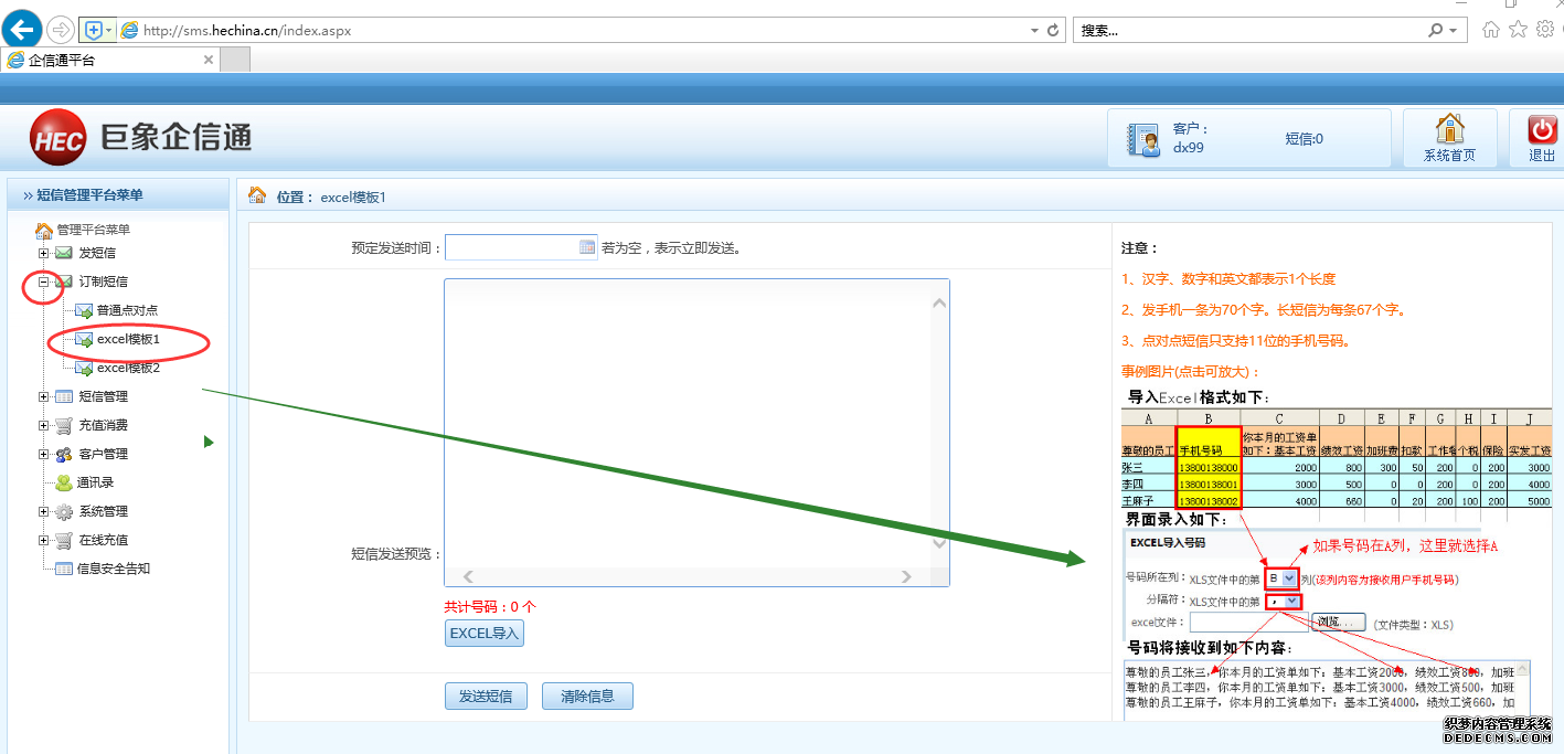 2、員工工資條短信群發,即每個員工的基本工資、績效等都不一樣的變量短信群發操作如下圖所示。有三種個性化變量短信提交方法,可根據您自身資料格式選擇其中一種。