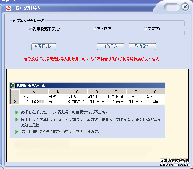 此項功能是方便使用者對自己的用戶資料的整理和備份,同時導出的文檔還能供別人導入使用,在文檔里,用戶資料的編輯、修改、添加、刪除,都可以實現,然后再重新導入,應用很靈活。要求的文件格式如下: